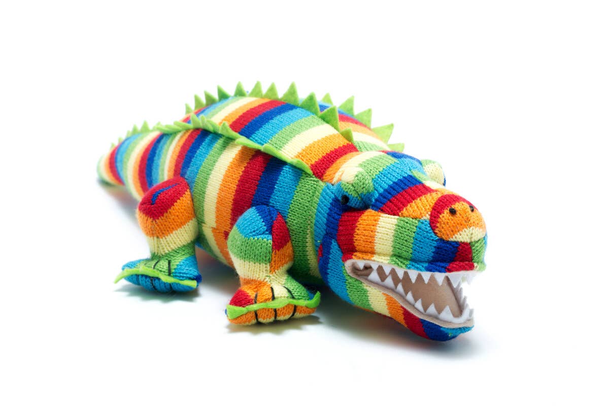 This bright colorful stripe crocodile plush toy makes a wonderful addition to the Best Years plush toy range. This reptile plush toy is soft and cuddly yet tactile. The bright colours are eye catching. This plush toy is great for imaginative play as well as cuddles.