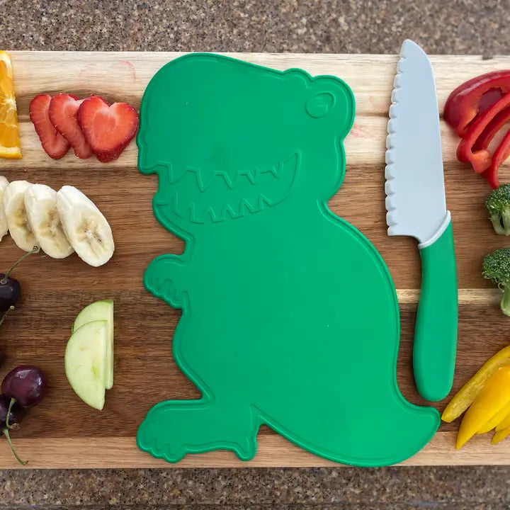 Dinosaur Cutting Board & Kid Safe Knife Set