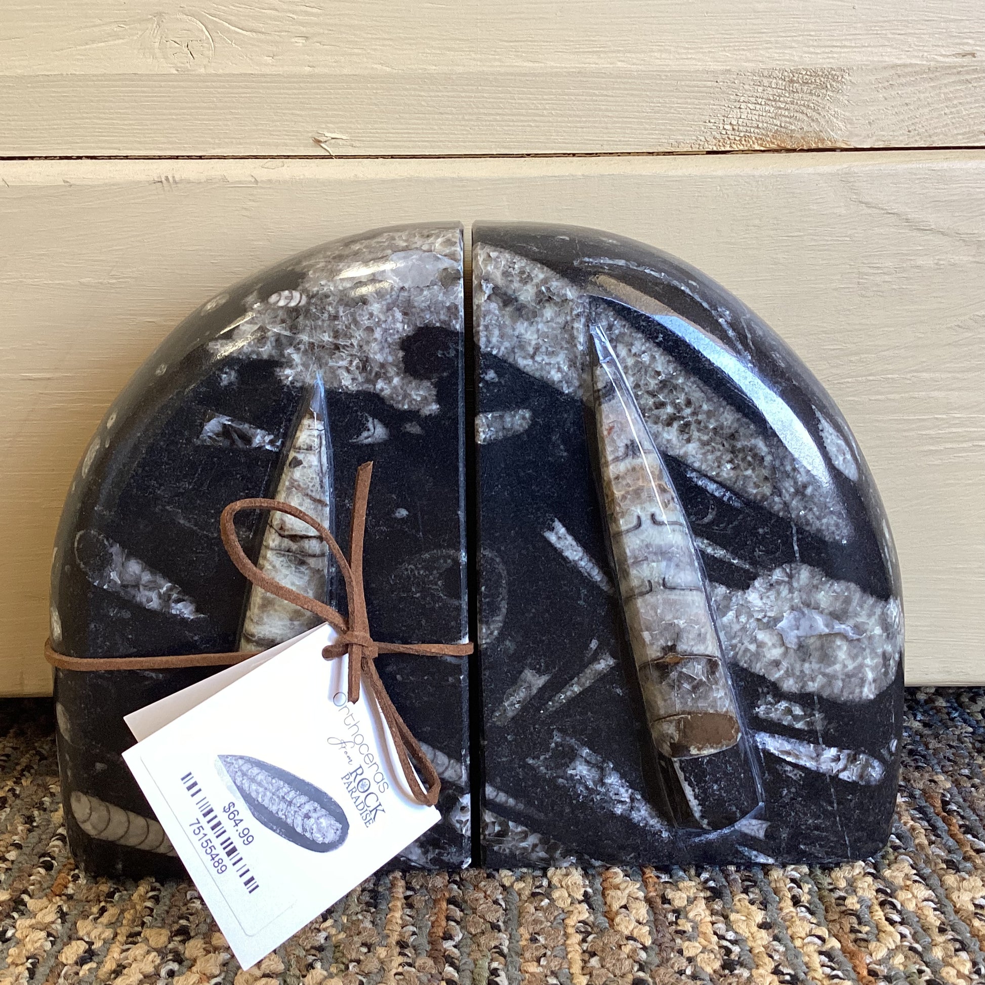 Display your books in a unique and educational way with our Orthaceras Book Ends. Crafted from authentic orthoceras fossils, these bookends add a touch of sophistication while showcasing the beauty of nature. A perfect addition to any bookshelf or desk, these bookends will elevate your decor and provide a conversation starter for guests.