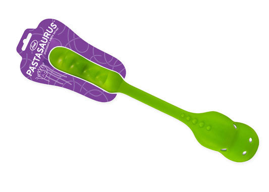 Add some fun to mealtime with the Pastasaurus Pasta Server! This quirky green dinosaur-shaped server will make serving pasta a playful experience. Its unique design and sturdy structure make it easy to scoop and serve, perfect for any pasta-loving family or party. Rawr-some!