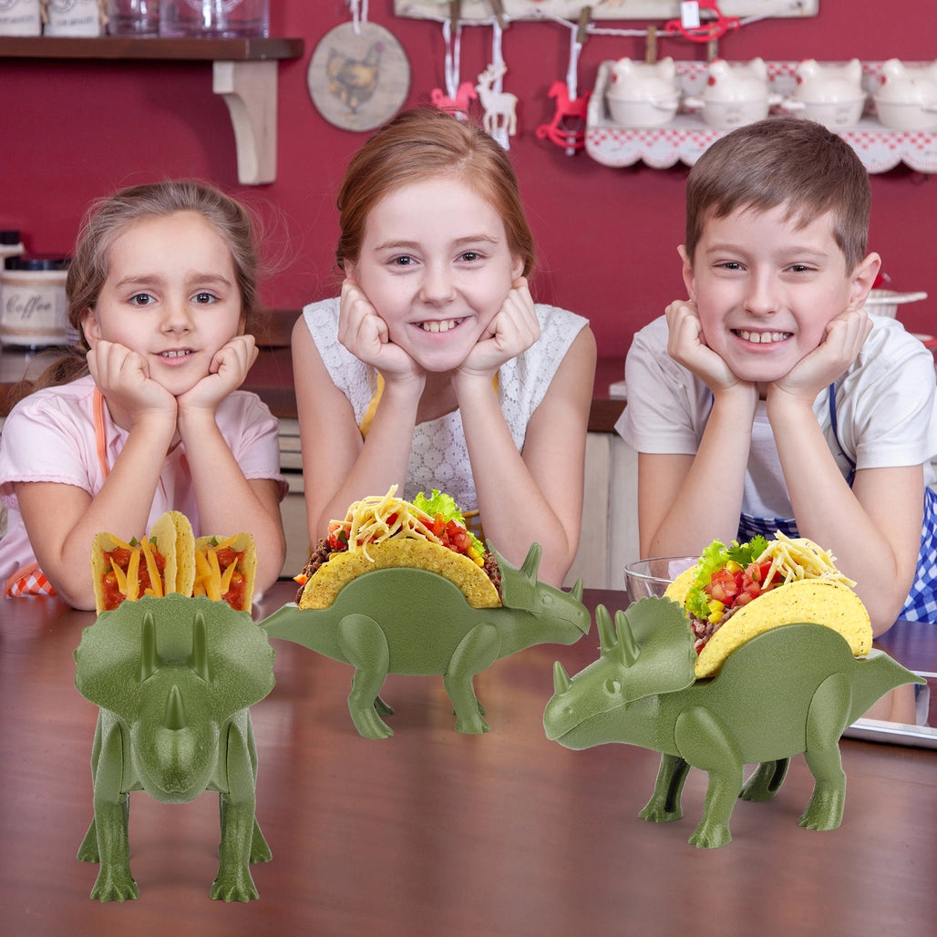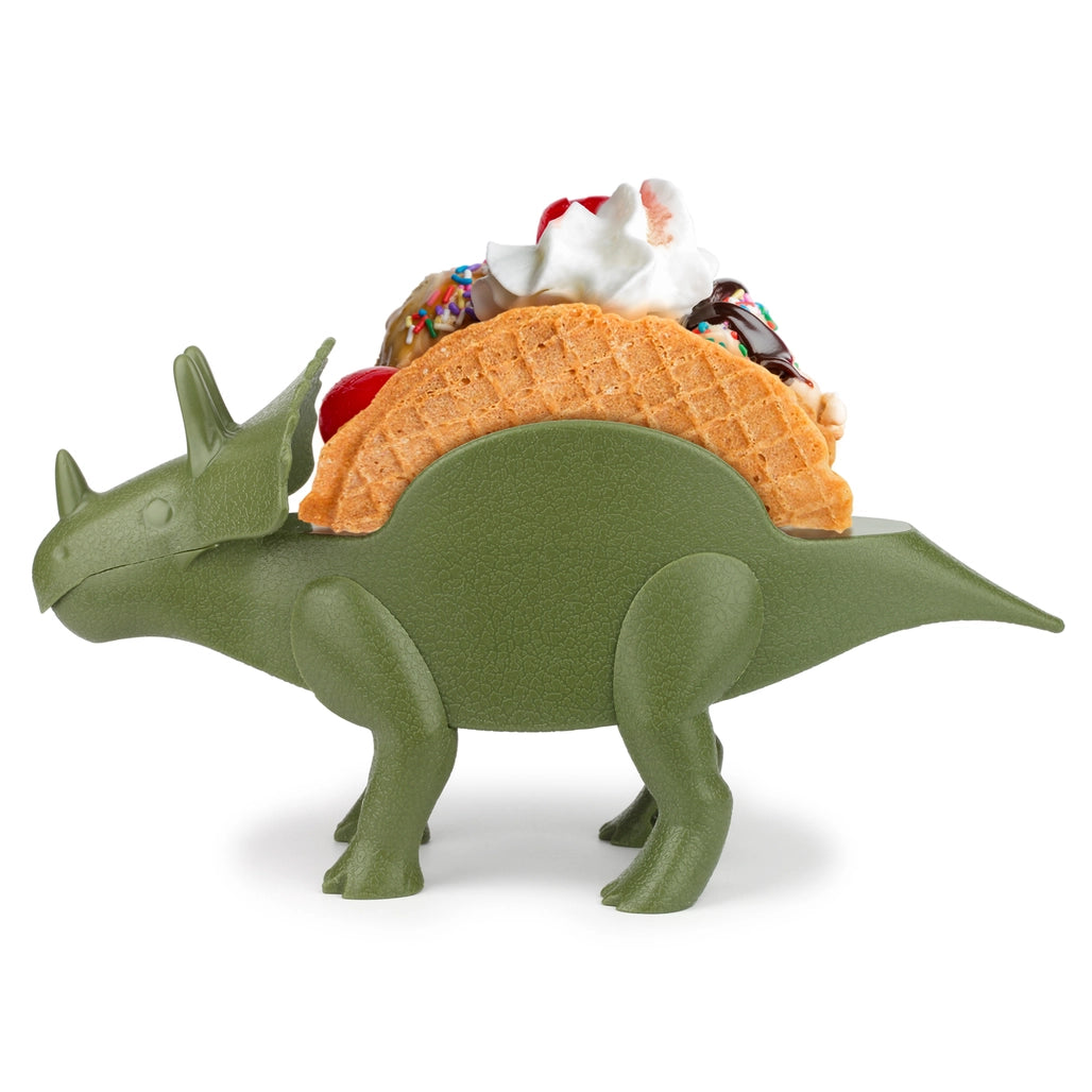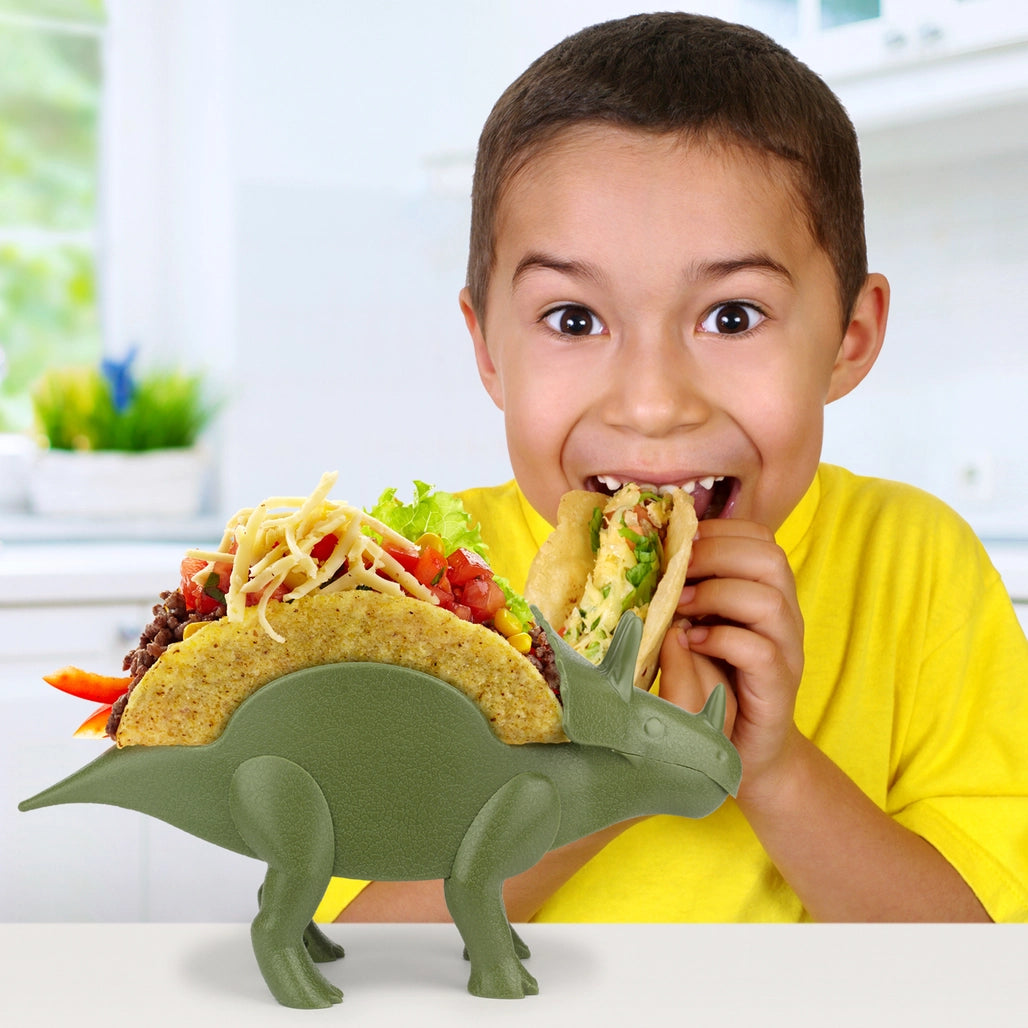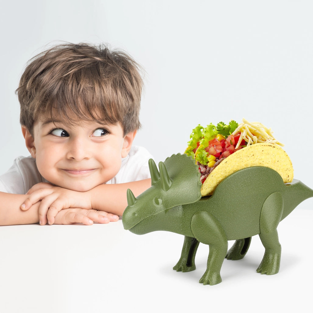 Thought to be extinct the prehistoric TriceraTACO is back and ready to carry two of your favorite tacos on its back! It's simple, Dinosaurs + tacos = prehistoric awesomeness sparking your child's imagination at mealtime. Not just for tacos, the TriceraTACO can hold toasts, waffles, sandwiches, and so much more! Perfect for dino-themed birthday parties, Tuesday Taco Nights, or just to bring fun to meals. Made of durable, 100% Food-Safe and BPA-Free plastic materials. Dishwasher safe.